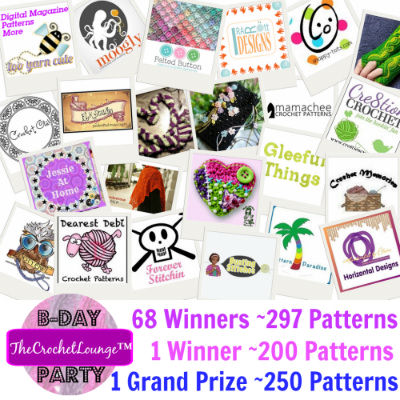 You get to hang out with me for 14 days and learn about these wonderful designers contributing to The Crochet Lounge™ B-day, Lounge-versary & Facebook 25k milestone multi-vendor giveaway!