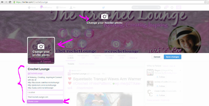 Was this helpful - come show me your brilliant new Twitter profile by tweeting me @CrochetLounge and help share, comment, pin this post :)